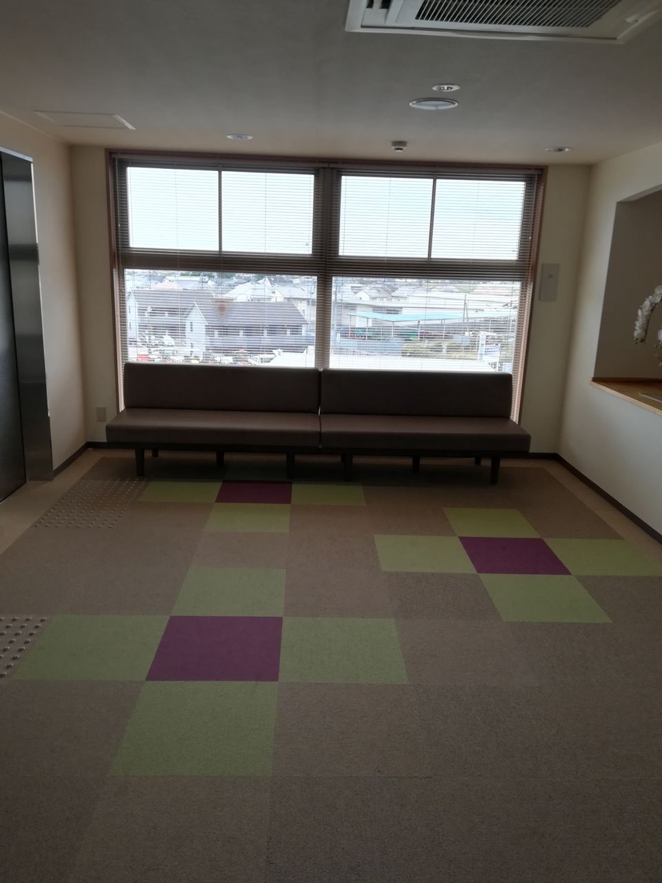 上からエレベーター、ロビーのラウンジ、廊下の写真となります。