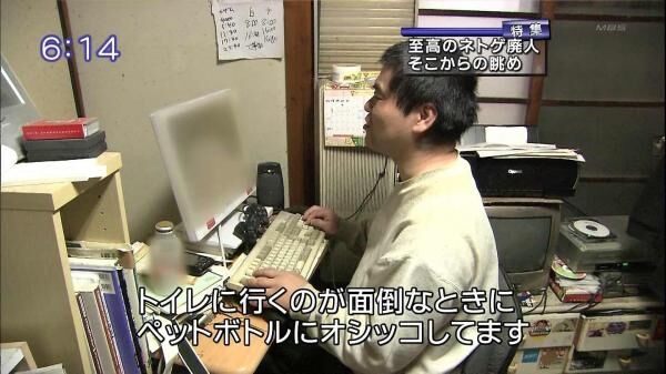 どうやらこのネトゲ廃人、トイレが行くのが面倒なときはペットボトルで用を足しているようです。