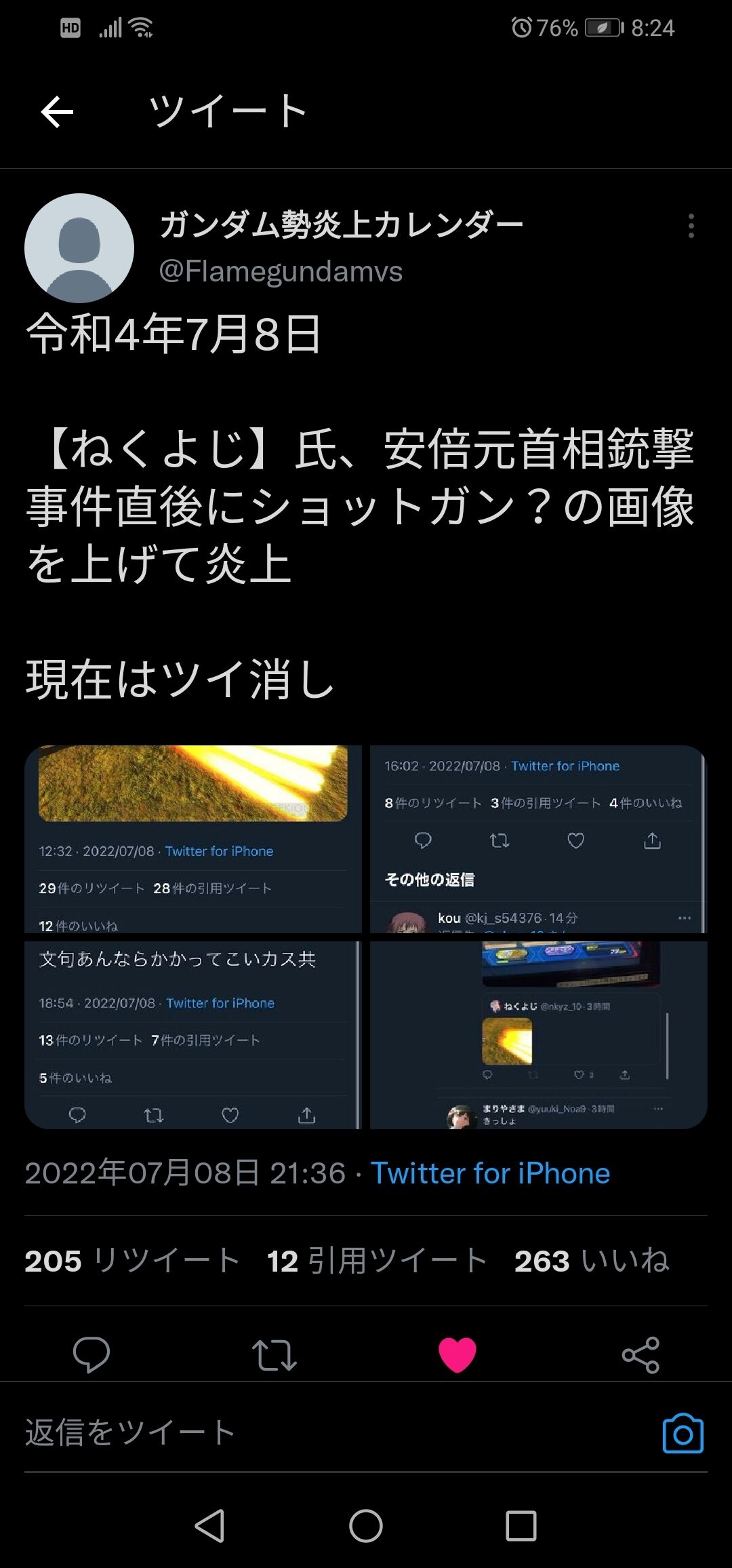 ガンダム勢のねくよじ氏が安倍元首相が銃撃された直後、おもむろにTwitterに散弾銃の画像をアップロードしました。