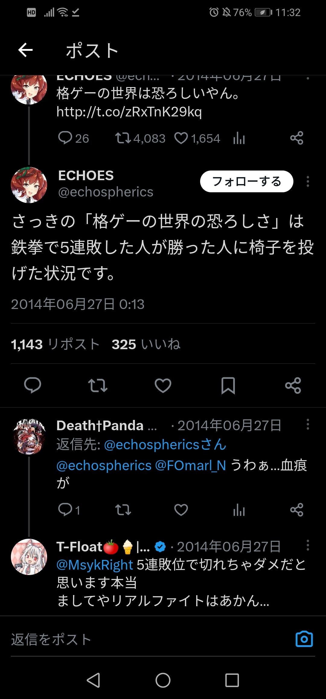 鉄拳というゲームで、5連敗した人がブチ切れて対面の人に椅子をぶん投げるという恐ろしすぎる事件が発生。